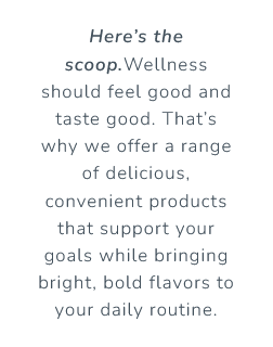 Here’s the scoop.Wellness should feel good and taste good. That’s why we offer a range of delicious, convenient products that support your goals while bringing bright, bold flavors to your daily routine.